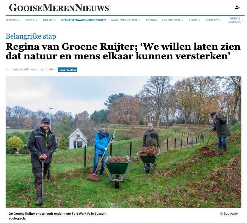 (Het volledige artikel in GooiseMerenNieuws is te lezen voor abonnees via deze link: https://www.gooisemerennieuws.nl/natuur-milieu/natuur-milieu/364607/regina-van-groene-ruijter-we-willen-laten-zien-dat-natuur-en-mens-elkaar-kunnen-versterken)